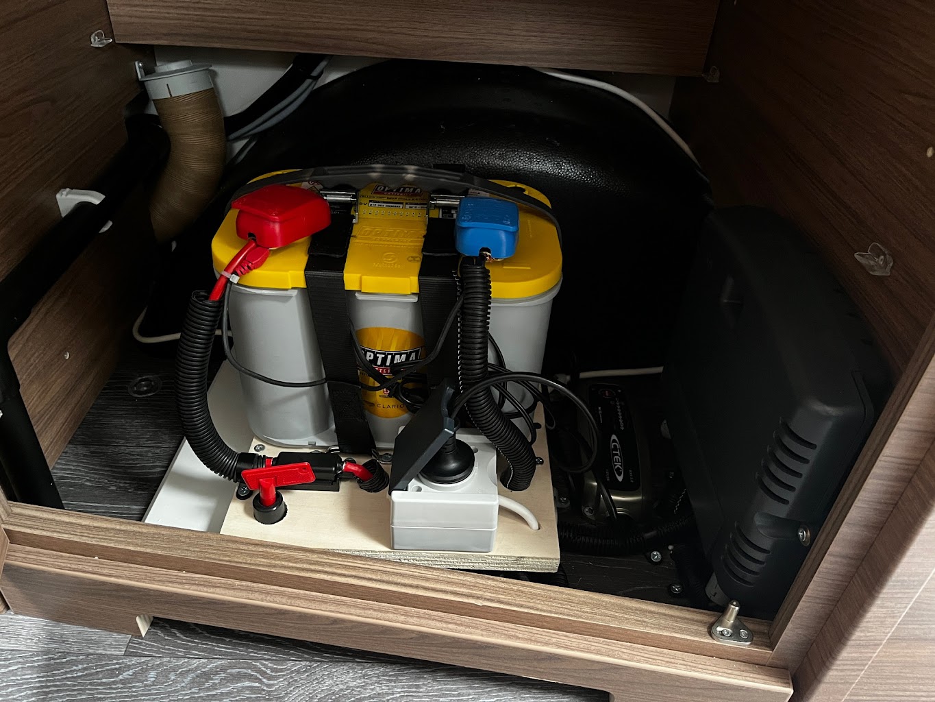 Recomendamos este set para uso normal. Juego completo incluye: - Ojop 4703062 Accuklemset - Optima Yellow Top YT S4.2 55Ah - CaravanMoverShop Material de montaje - Ctek 56-855 Multi XS 5.0 Polar - Completo con interruptor y material de montaje, etc. - Servicio óptimo y garantía de 5 Año